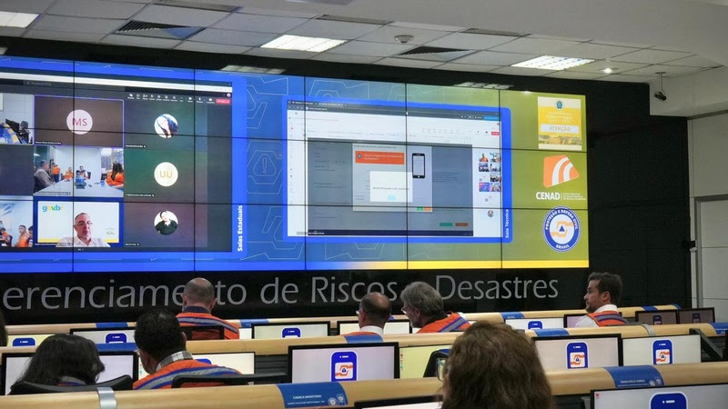 Alerta demonstração foi disparado do Centro Nacional de Gerenciamento de Riscos e Desastres, em Brasília (Foto: Yasmin Fonseca/MIDR)